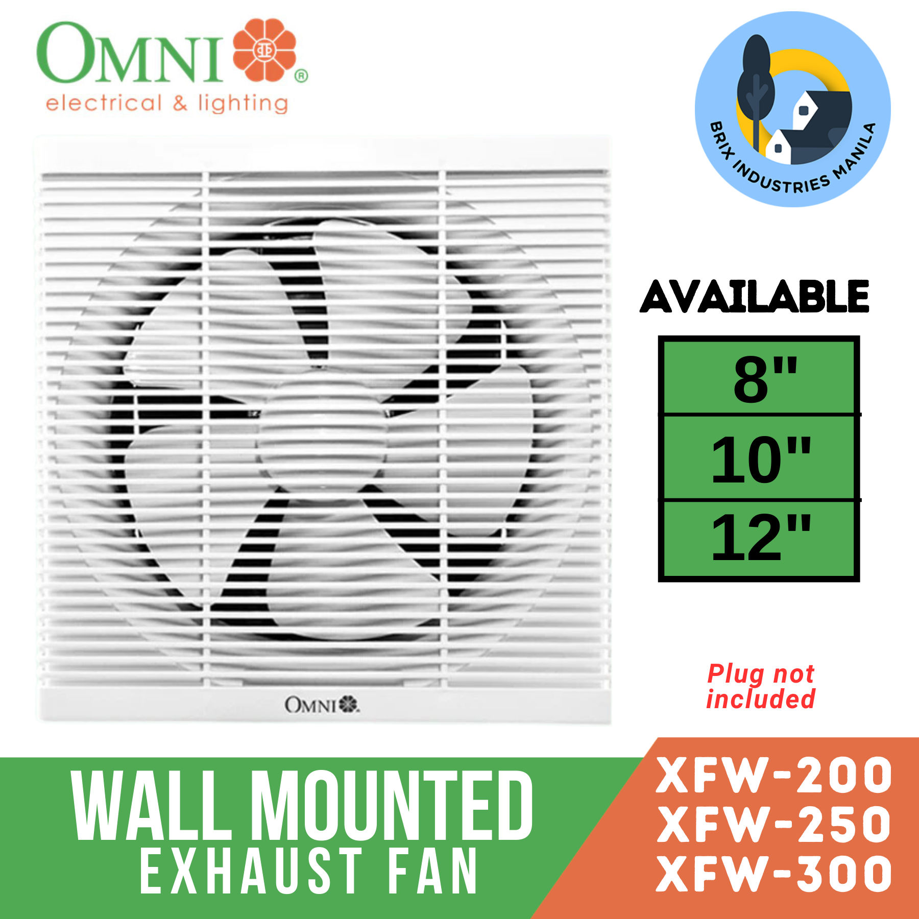 Omni Wall Mounted Exhaust Fan 8" (XFW-200) , 10" (XFW-250) and 12" (XFW-300) All Sizes Available <Brix Industries Manila>